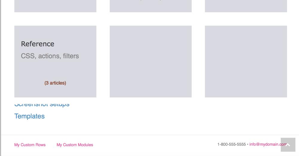 Enable a parallax effect in which the footer widgets and footer are revealed as the end of the content scrolls up. In the following example, the content (gray boxes) moves up as the footer comes into view.