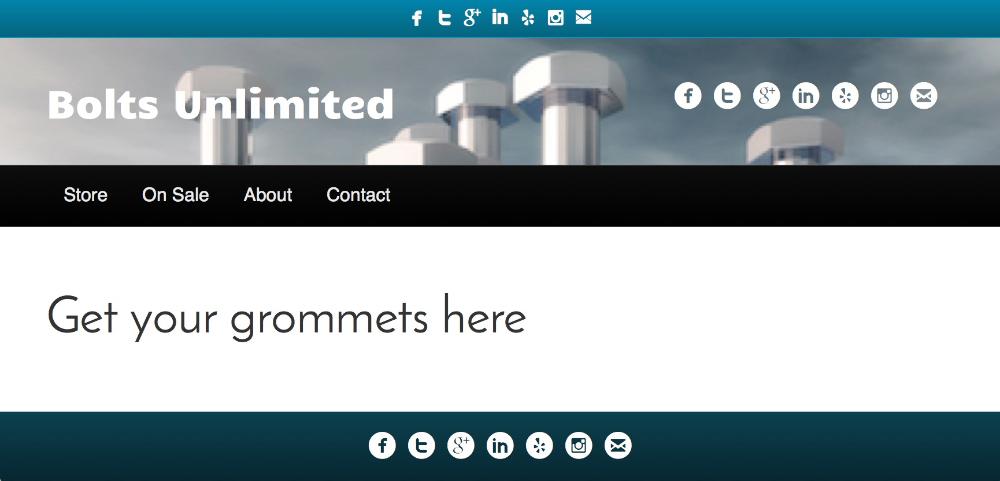 This screenshot shows these locations. In the header and footer, you can place the icons left, right, or center. In the Nav Bottom location, the icons will disappear as the screen is sized down. This screenshot shows only about half of the available social icons.