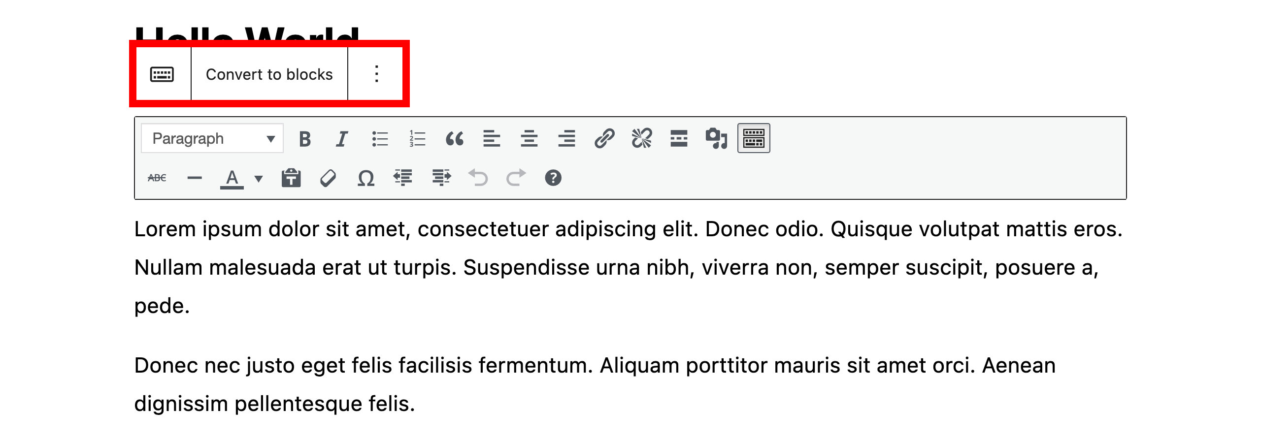 Result: Opening a Beaver Builder layout in the Standard Editor converts the layout into a single Classic block. From there, you can select the option to convert the item to blocks, as shown in the following screenshot.