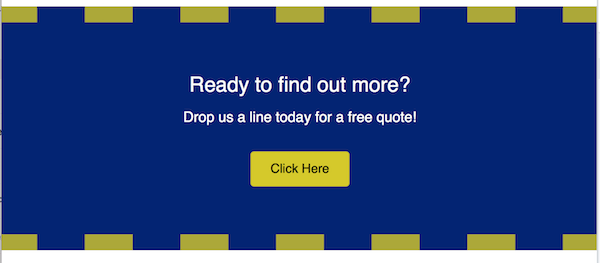 Or you can make a border style become part of the design. In the following example, there's a 20 px upper and lower border of the same color as the button, set to Dashed and 80% opacity. To compensate for the large border, the row padding is increased to 40px. Notice how the bold effect draws the eyes toward the call to action.