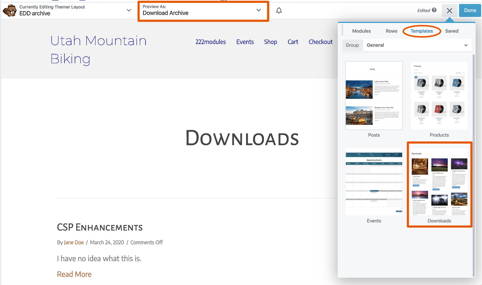 It helps to have some download items created first so that you have something to preview as you design the layout in Beaver Themer.