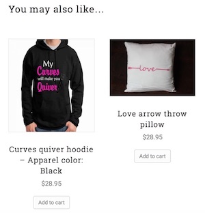 If you have selected products for the Up-sells field on the Linked Products tab for your product, they are displayed with the heading You may also like...